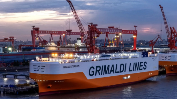 此次交付的“GRANDE TIANJIN”輪是外高橋造船為Grimaldi公司建造的首艘9000車位汽車運輸船(PCTC),具備9000車標準裝載能力,可兼容電動車、傳統(tǒng)燃料汽車及重型滾裝貨物。該船采用新型低油耗主機,集成扭曲舵、轂帽鰭等節(jié)能裝置,顯著降低能耗;配備中壓岸電系統(tǒng)實現(xiàn)靠泊零碳排放,并獲得意大利船級社“氨燃料預留(Ammonia Ready)”認證,為未來零碳燃料改裝預留技術(shù)空間。“GRANDE TIANJIN”輪的船塢及碼頭建造周期僅179天,刷新同型船建造紀錄。