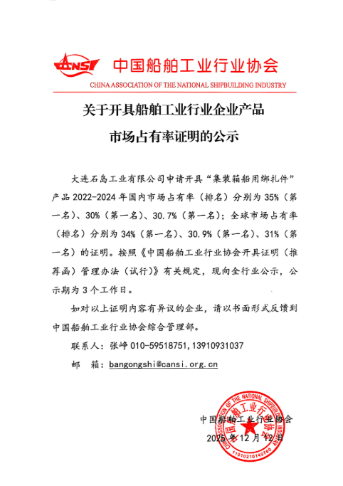 關(guān)于開(kāi)具船舶工業(yè)行業(yè)企業(yè)產(chǎn)品市場(chǎng)占有率證明的公示