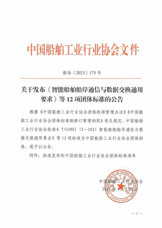 關(guān)于發(fā)布《智能船舶船岸通信與數(shù)據(jù)交換通用要求》等12項(xiàng)團(tuán)體標(biāo)準(zhǔn)的公告