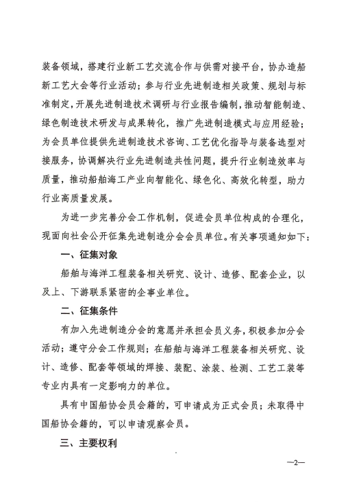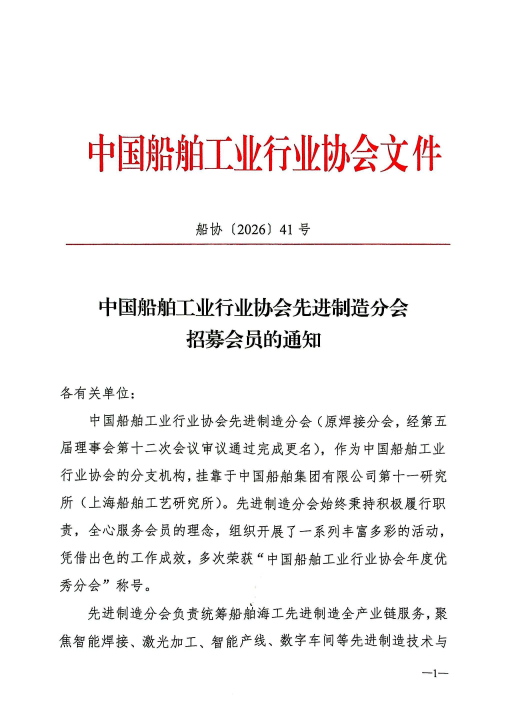 中國船舶工業(yè)行業(yè)協(xié)會先進制造分會招募會員的通知
